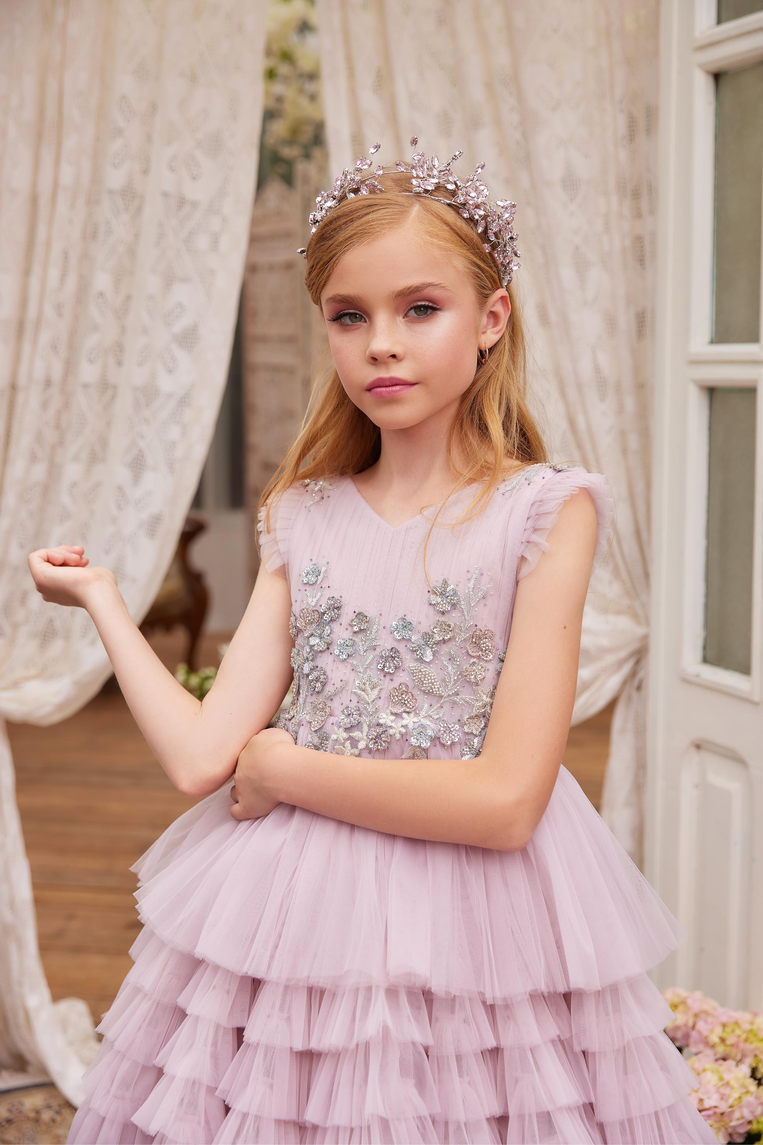 Delicate and enchanting, the Floral Ballgown is a dreamy ballgown perfect for little ones with a flair for elegance. The bodice is adorned with intricate floral appliqué, adding a touch of whimsy and charm, while layers of soft tulle create a voluminous skirt that moves gracefully with every step. Designed in a soft pastel hue, this gown captures the innocence and joy of youth, making it ideal for flower girls, birthday celebrations, or any special occasion where your little star wants to shine.