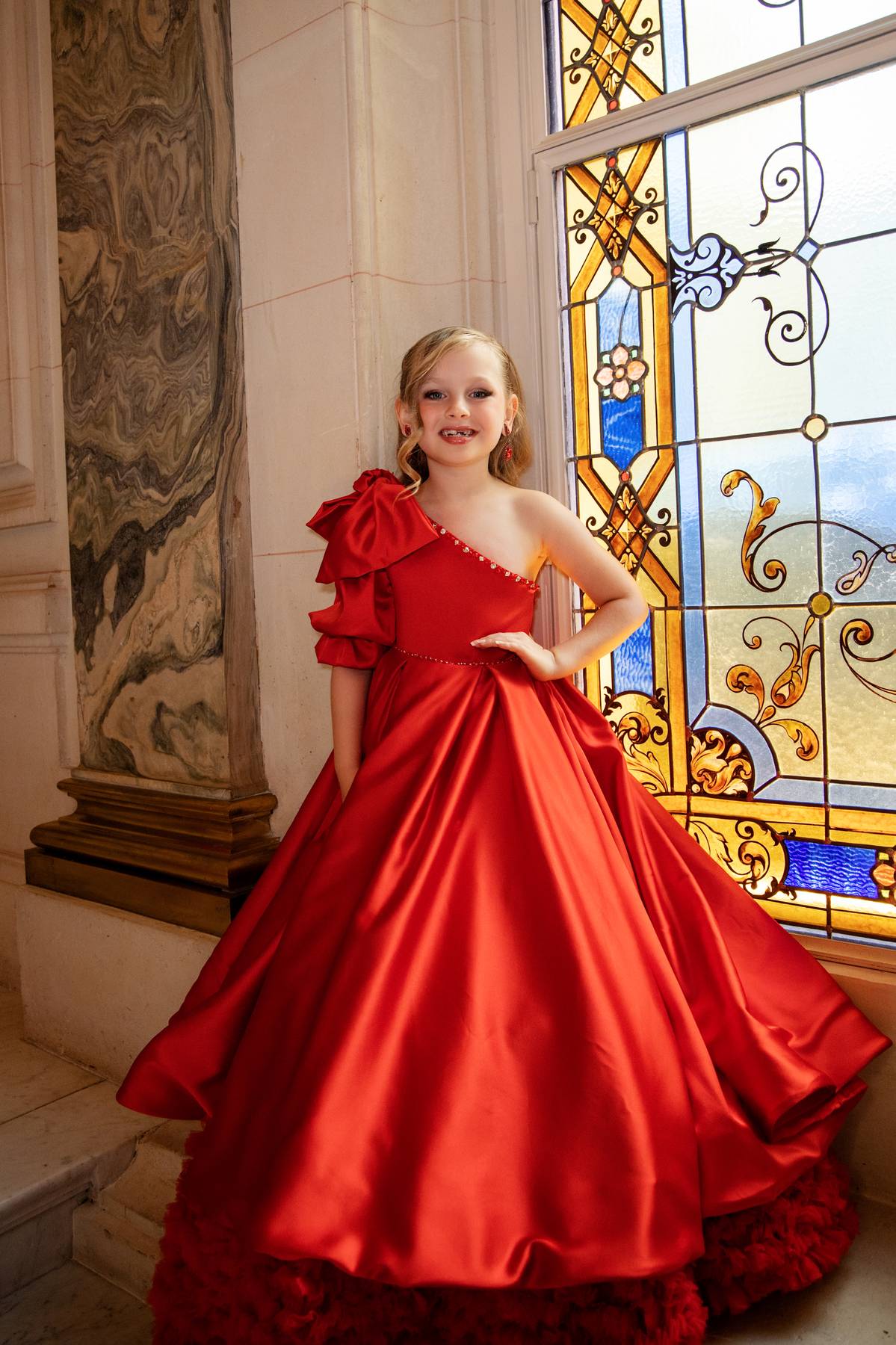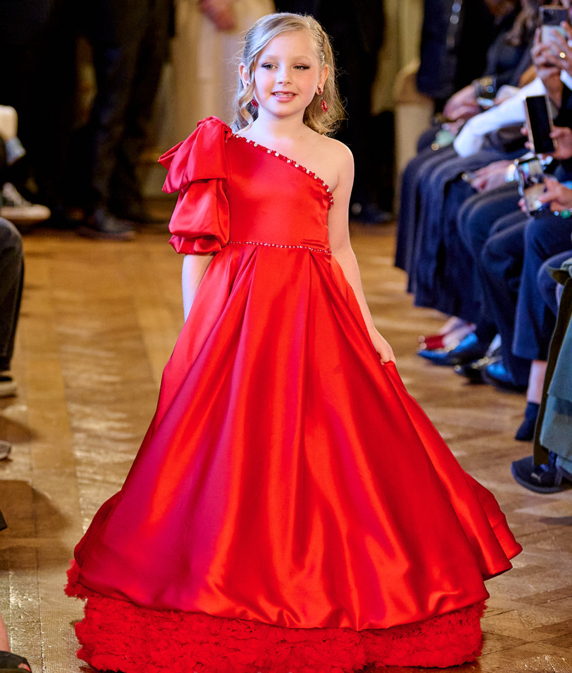 The Laellah Gown captivates with an A-line silhouette and a chic one-shoulder neckline, detailed with delicate beadwork along the edges. A playful bow on the shoulder adds a touch of elegance and drama, perfectly balancing sophistication with bold style.