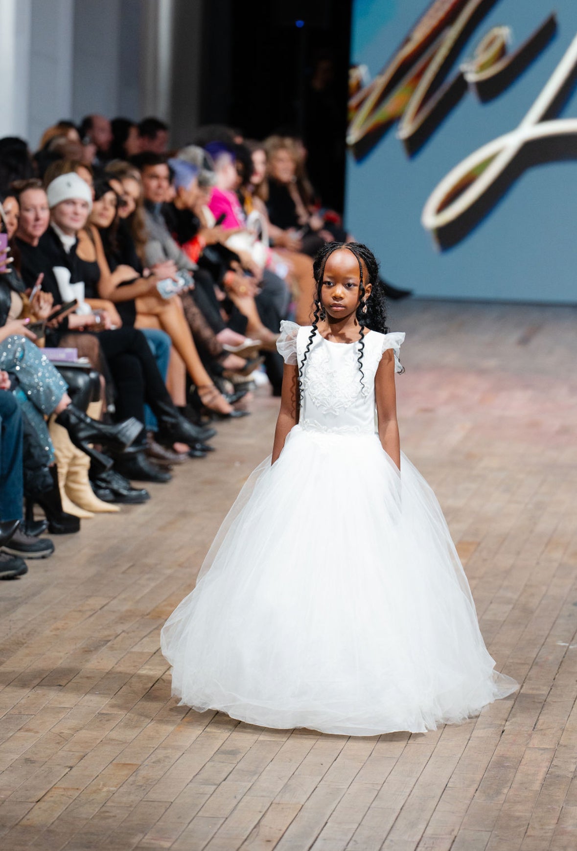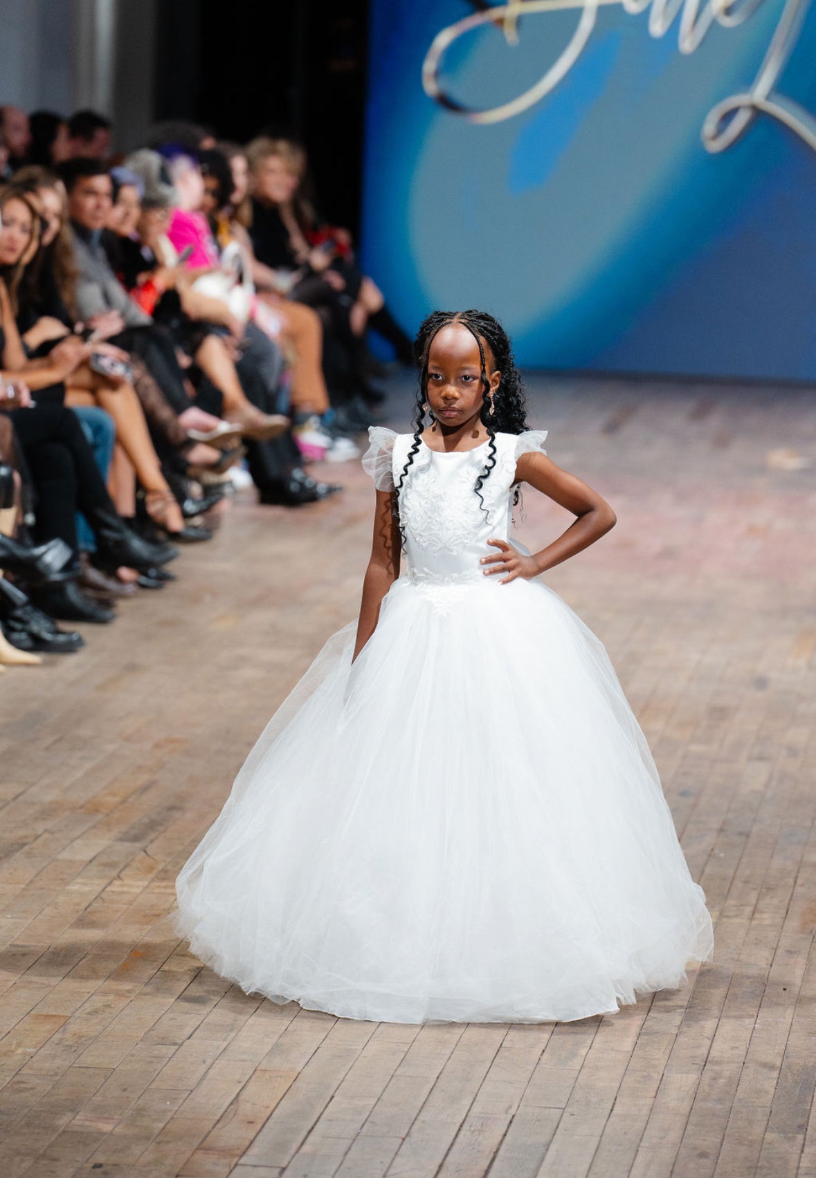 This enchanting ballgown features a luxurious champagne tulle skirt adorned with delicate embroidery and a lace train. The scoop neckline is complemented by a whimsical tulle arm piece, adding a touch of modern grace to its timeless silhouette. Designed for unforgettable moments, the Milan Gown captures the purity, strength, and beauty of its namesake, ensuring your little one shines like a true star at any special occasion.