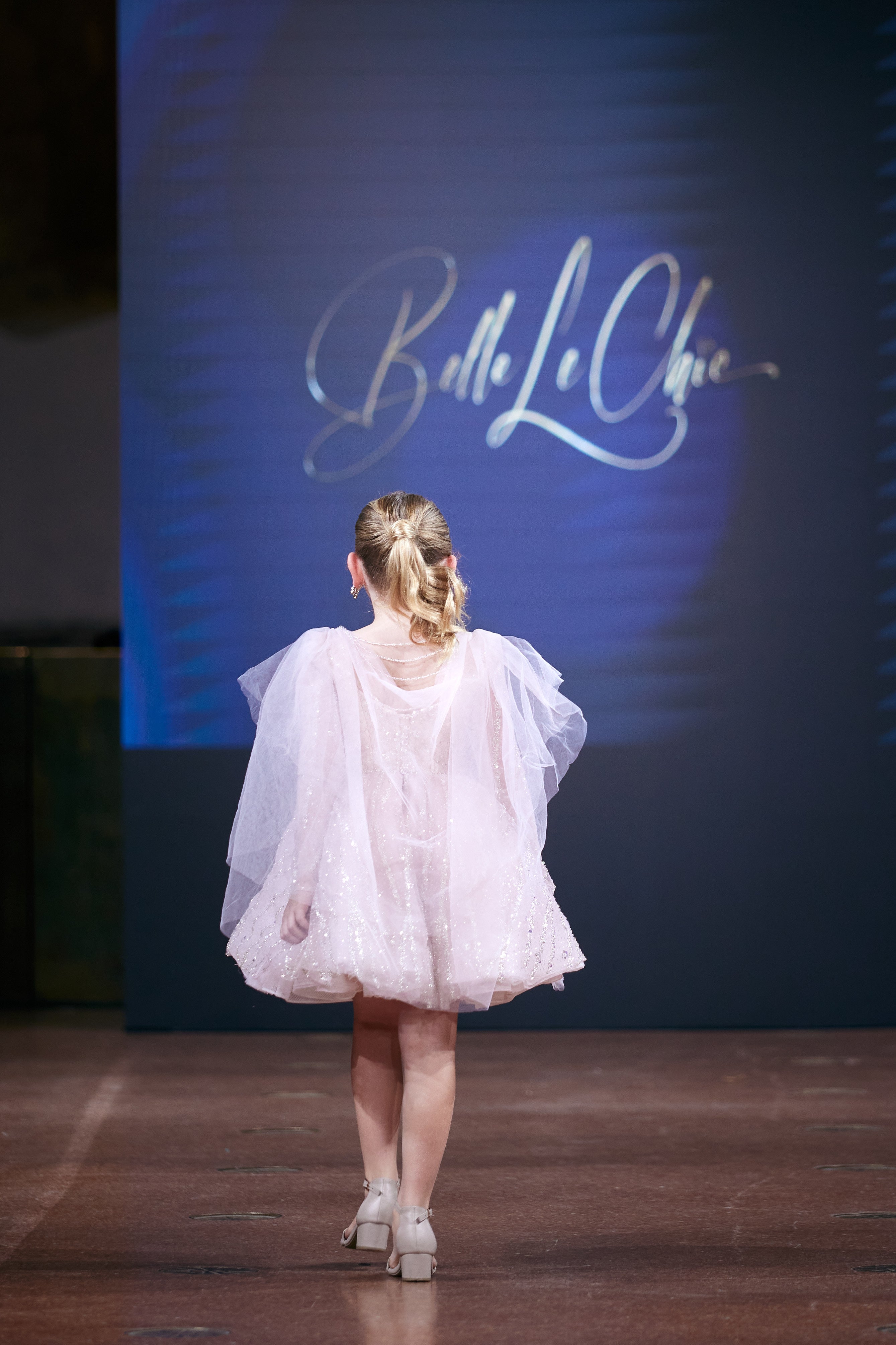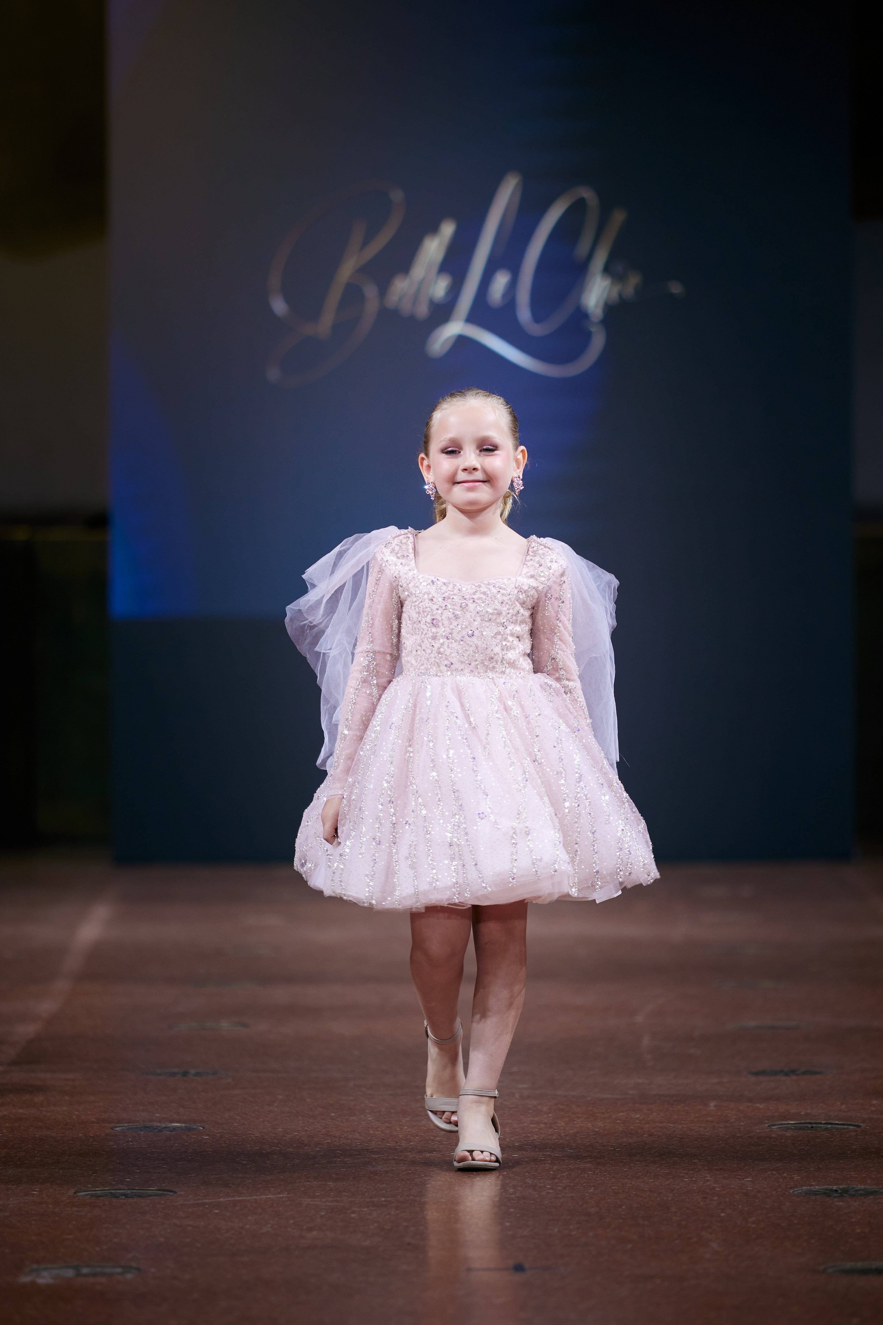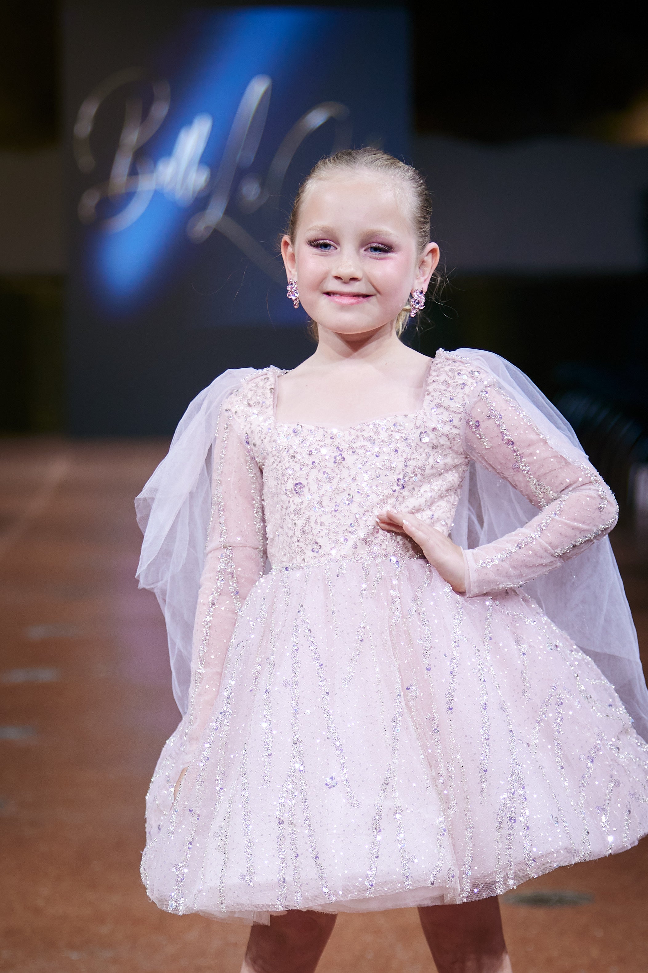 The Pink Beaded A-Line Mini shines with long sleeves and a delicate cape, adding a touch of playful elegance. Perfect for twirling and sparkling, it’s made for magical moments.