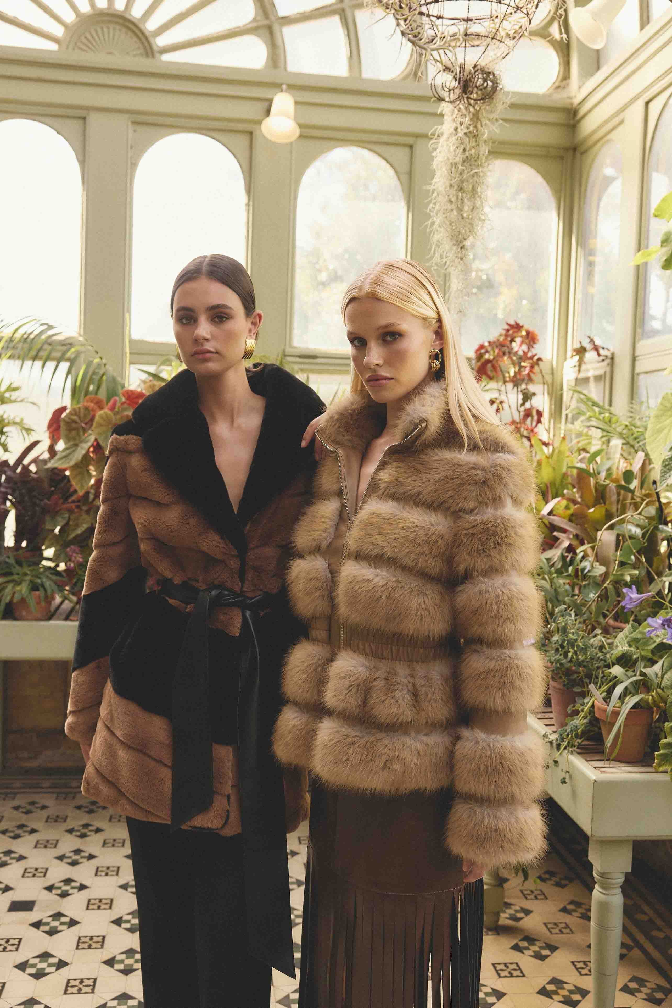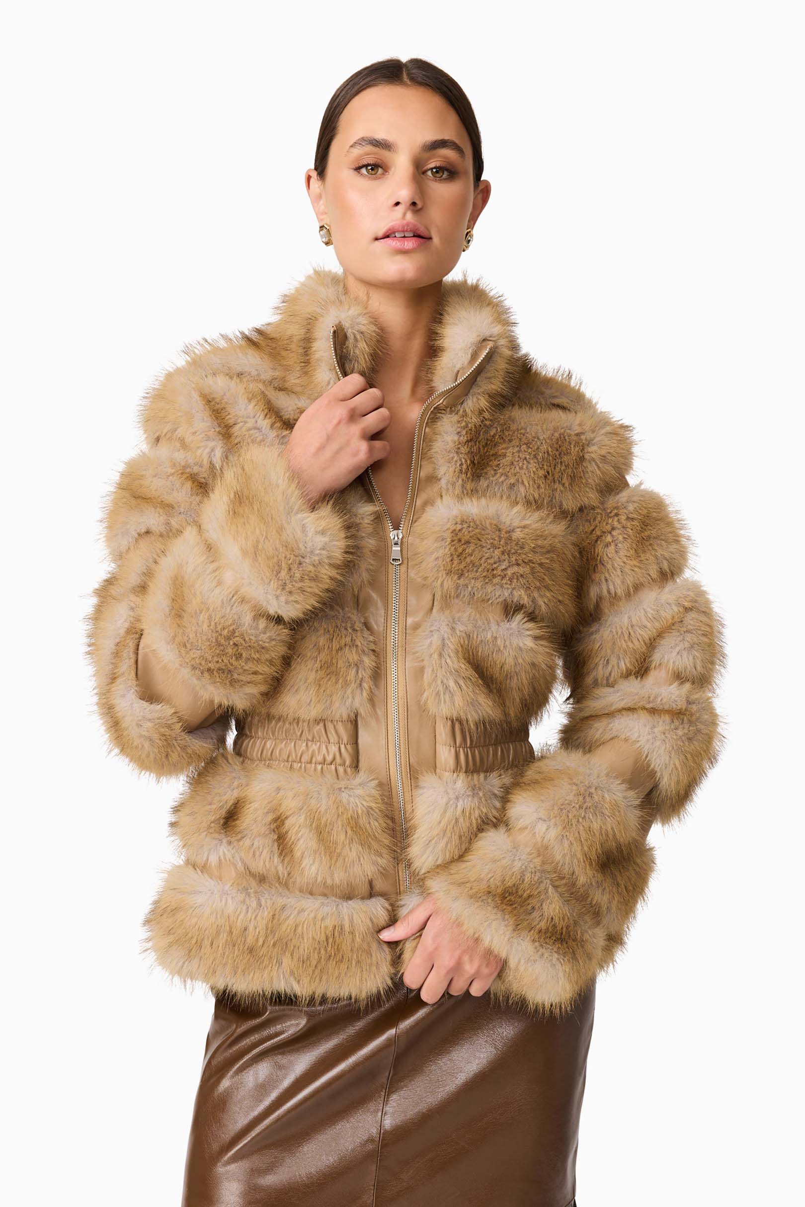 Refined with a touch of edge, the Aisling Faux Fur & Leather Jacket in Beige is your statement outerwear for the season. This high neck design combines the plush texture of faux fur fabrication with sleek leather accents, offering a modern contrast that feels both elevated and on-trend.