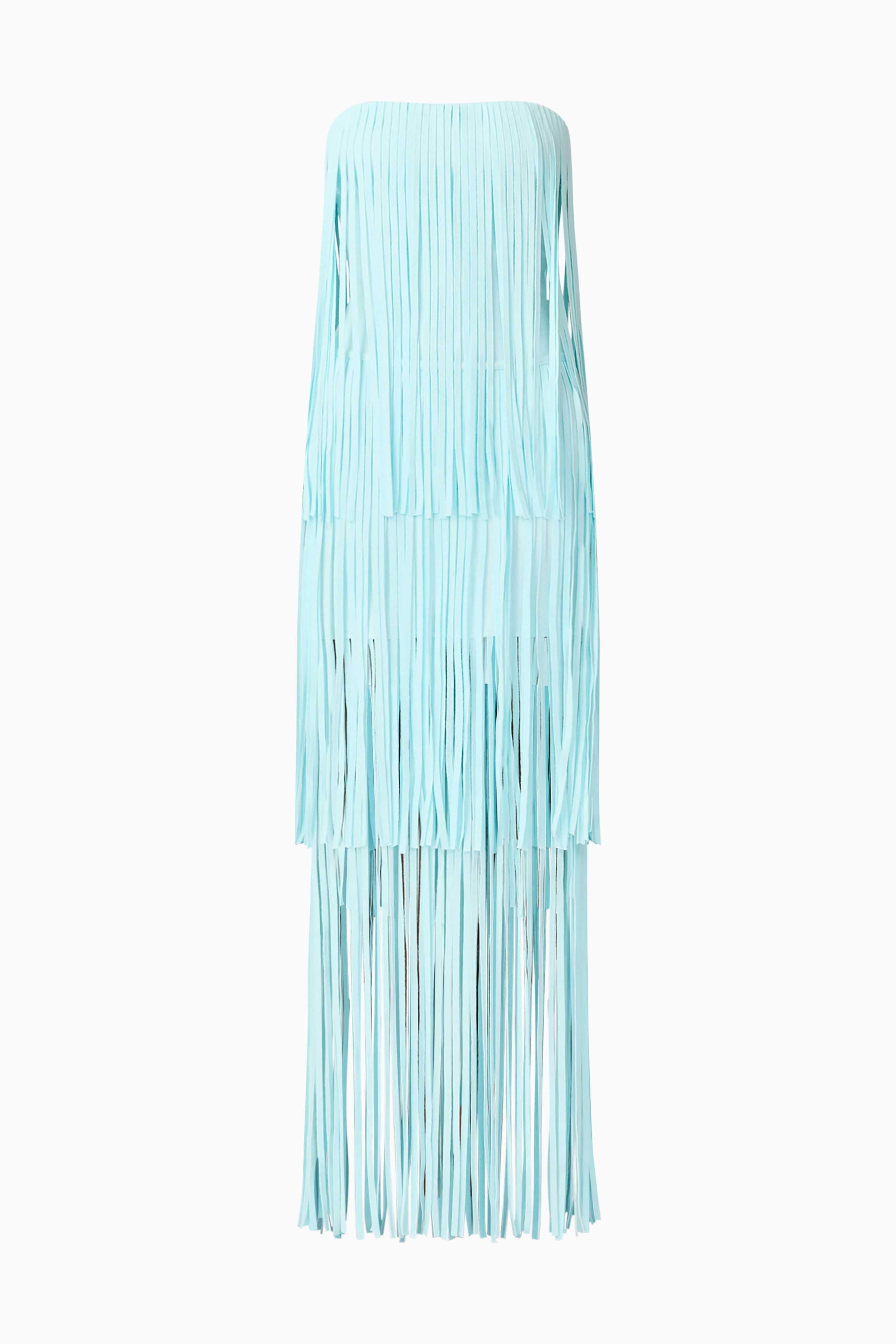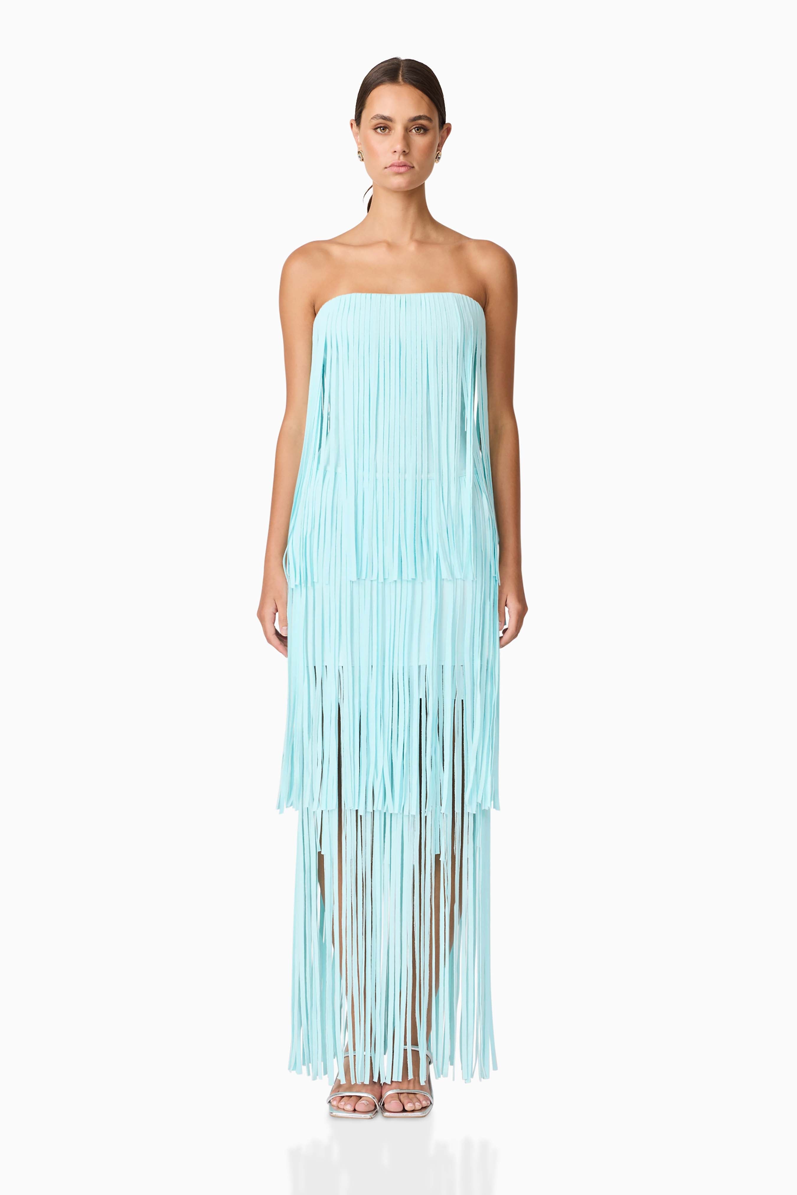 Elegant with a directional edge, the Alya Tiered Maxi Dress in Blue brings texture and movement to a sleek, strapless silhouette. Designed with a flattering fitted bodice and a softly tiered skirt, this statement piece is elevated by delicate string overlays that layer across the bodice and skirt—creating a light, dimensional finish.