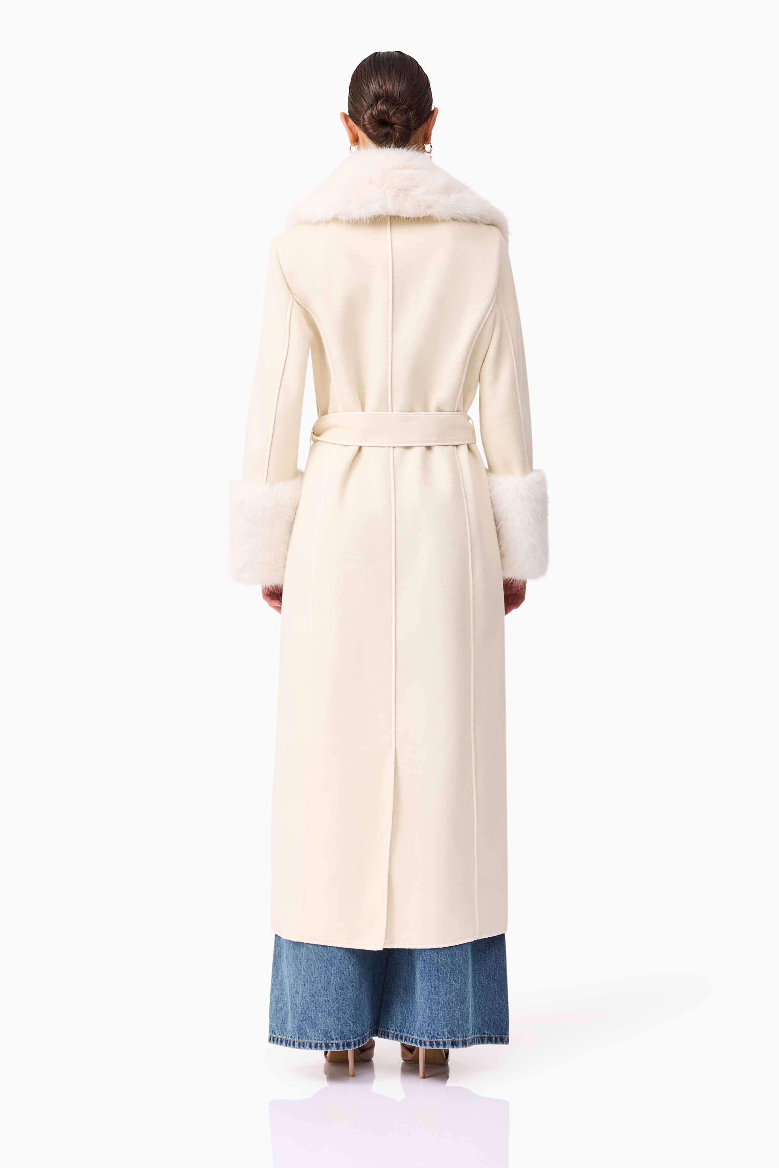 Elegant and enduring, the Aria Coat in Cream is a wardrobe investment piece that transitions seamlessly from day to night with timeless grace.