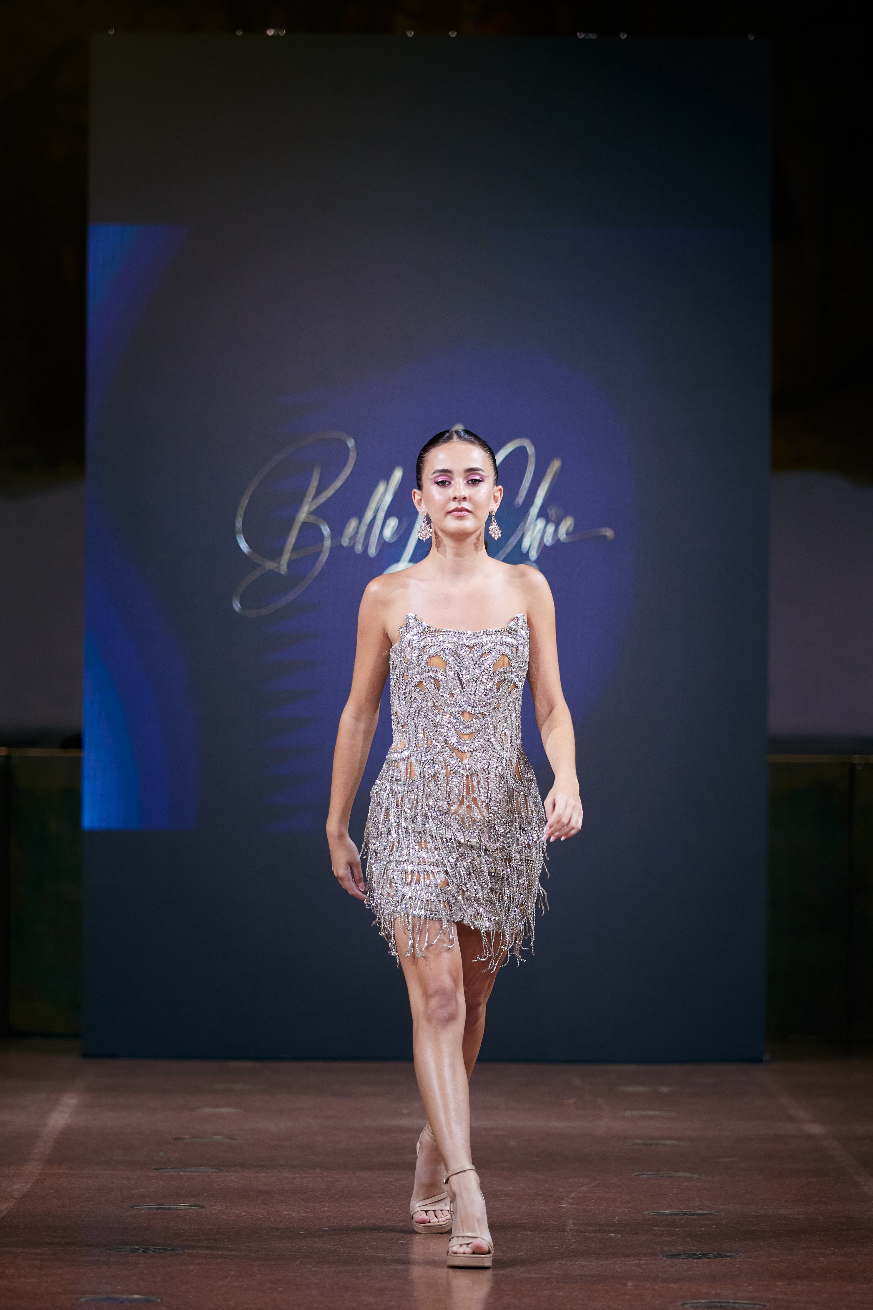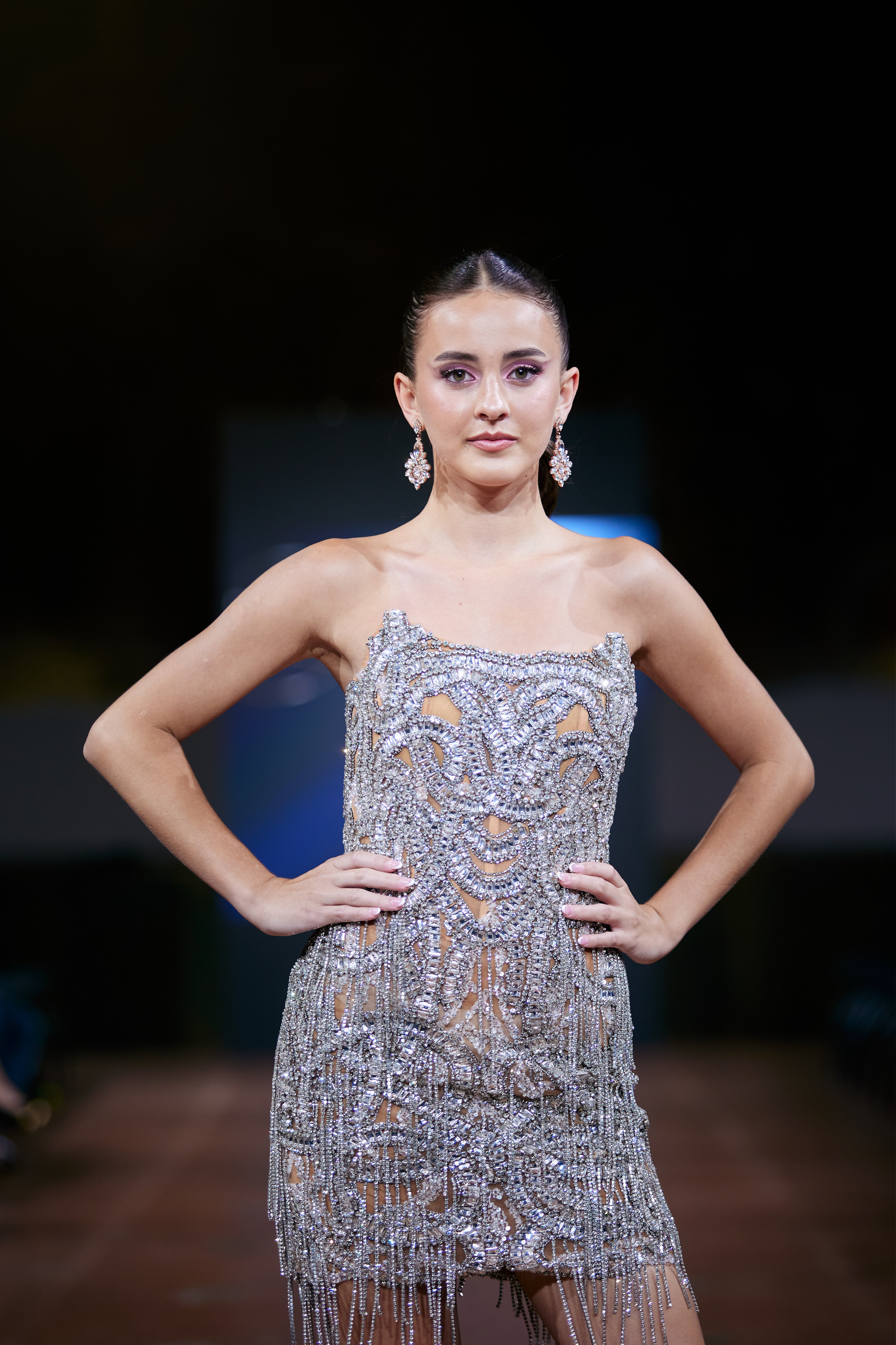 Be red carpet ready in this glamorous fitted short dress. This sparkling dress features a strapless scoop neckline and is adorned with stunning intricately detailed beadwork and flapper style fringe for a unique touch to give the wow factor. The dress has a classic back zipper as well.