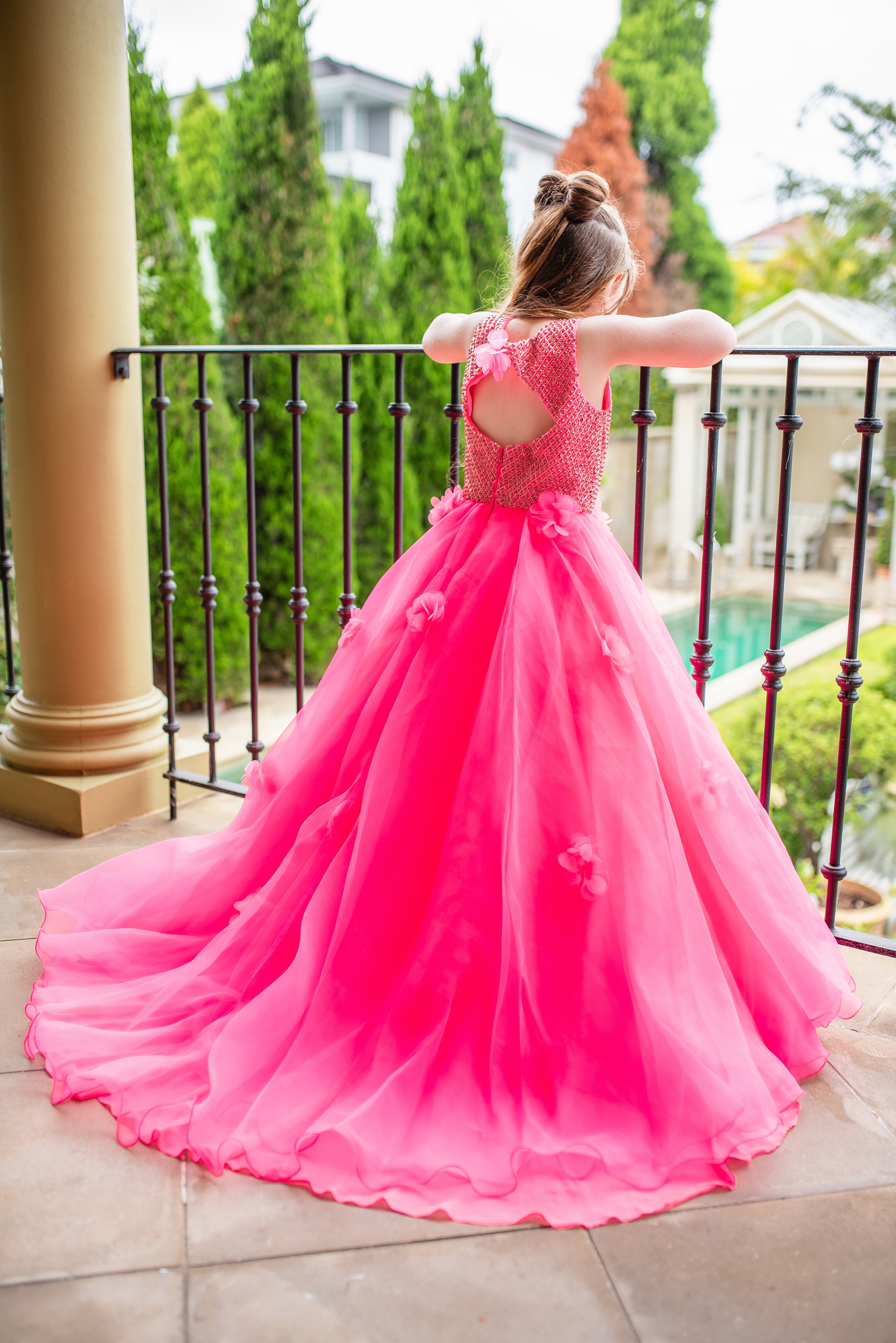 Who doesn't love a little 3D action? Say hello to your next organza ballgown made with 3D flowers. You will rock the runway with a fully beaded bodice and keyhole back detail.